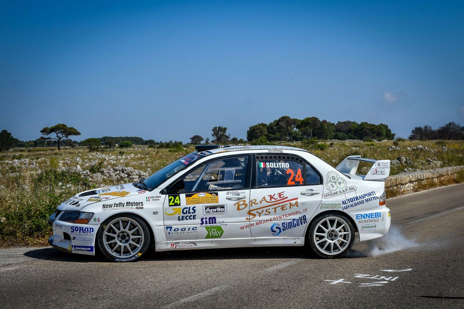 Sfortunato “il Salento” di Bartolomeo Solitro e Alberto Porzio, in gara con una Lancer Evo IX R4 della GPR Sport, una vettura non semplice da gestire nelle prove salentine e che si è arresa a causa di un guasto tecnico dopo la PS4.