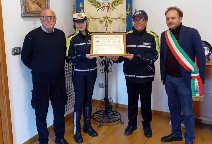 Il Comandante Giuseppe Marasco della Civilis Confederazione Europea ONLUS nonché Capogruppo Consigliere Comunale con Domenico La Marca – Sindaco e la Comandante della Polizia Locale Vice Commissario Tino Maria hanno conferito all’ispettore superiore Salvatore Totaro, pergamena con nastrino ed encomio della Pubblica Amminiatrazione. Motivazione: