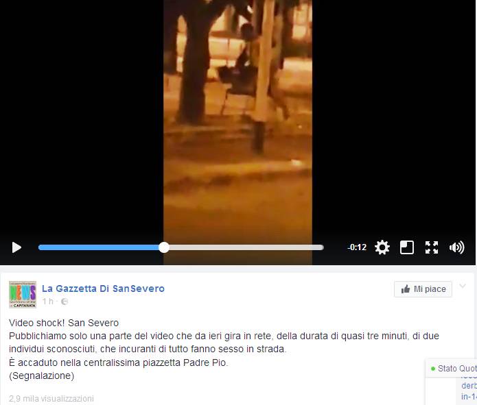 Un video di un uomo e di una donna che fanno sesso in strada a San Severo è finito sul sito YouReporter.