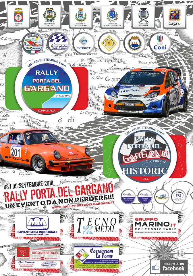 A sfidarsi sul filo dei secondi, tra prove speciali e diversi tipi di tracciati (nel “classico” triangolo Manfredonia, Monte Sant’Angelo e Mattinata), ci saranno i migliori equipaggi ed autoveicoli sportivi in circolazione. Oltre alla potenza dei motori ed al settaggio delle auto, nell’ 8° Rally Porta del Gargano, saranno decisivi l’abilità ed il sangue freddo degli equipaggi, per quella che si annuncia come una delle edizioni più combattute e spettacolari di sempre. La tappa garganica sarà una delle quattro della Coppa Italia 4^ Zona (si prevede un incremento ulteriore delle iscrizioni rispetto anche agli ultimi anni) ed in concomitanza ci sarà anche la competizione delle auto che hanno fatto la storia di questo sport con la versione “Classic” della competizione.