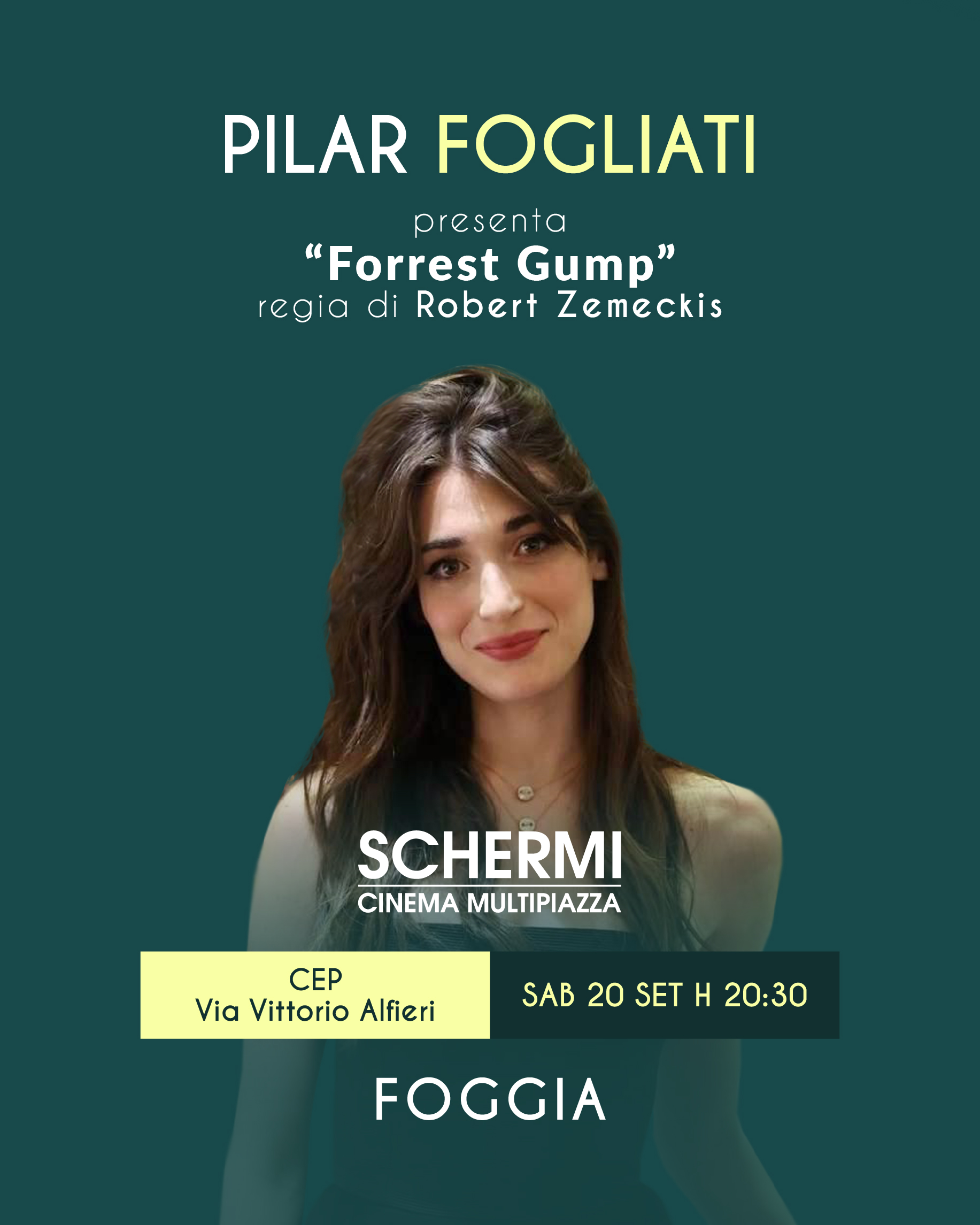 “Schermi”, a Foggia un sabato sera con Pilar Fogliati e “Forrest Gump”