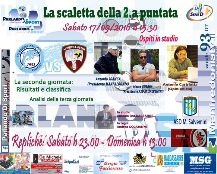 Seconda puntata di “Parlando di Sport” Redazione 17 Settembre 2016 Articoli correlati Sciopero delle farmacie il 13 aprile: stop di 24 ore in tutta Italia, servizi garantiti Sinner‑Alcaraz: dove vedere la finale di Montecarlo in chiaro, orario e programmazione completa