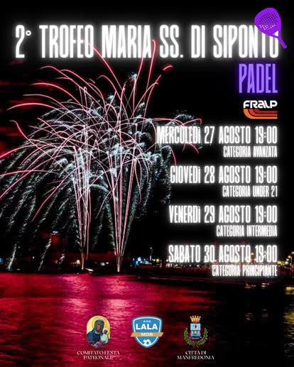 📌 L’ASD LALA Manfredonia e il Centro Sportivo Centro_Sportivo_FRALP organizza il secondo trofeo Maria SS di Siponto di padel e calcio a 6.