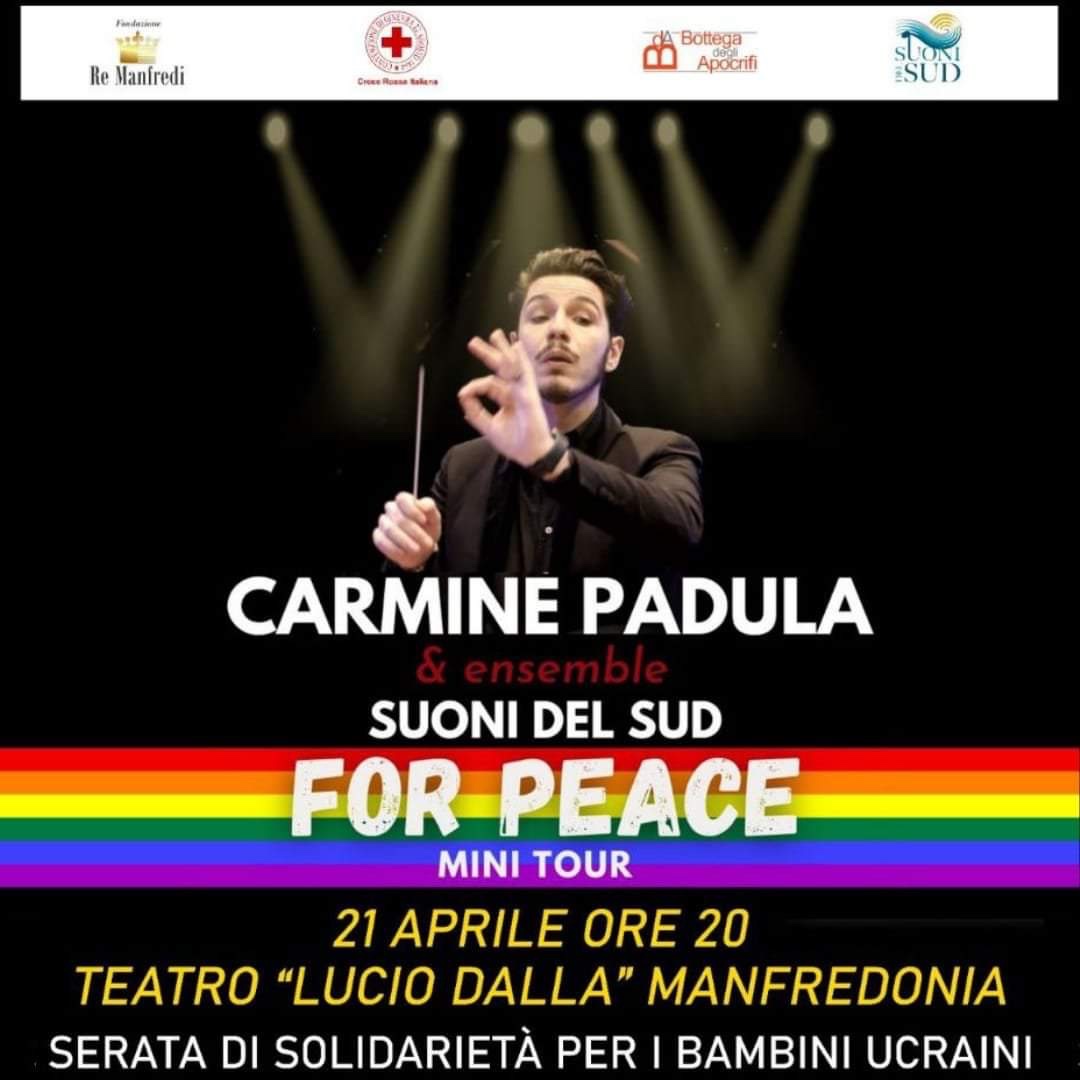 La Fondazione Re Manfredi in collaborazione con Croce Rossa Italiana Comitato di Manfredonia, Suoni del Sud e Bottega degli Apocrifi organizza una Serata di Solidarietà per i Bambini Ucraini con la partecipazione straordinaria del Maestro Carmine Padula e l’ensemble Suoni del Sud.