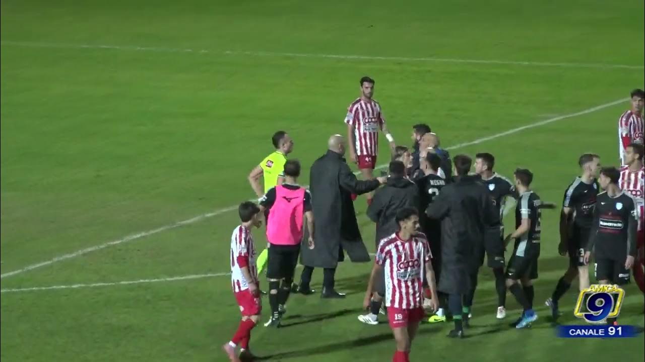 Stangata per Taurino, allenatore della Virtus Francavilla: dodici giornate di squalifica perchè al termine della gara, raggiungeva con fare minaccioso il Direttore di gara e profferiva al suo indirizzo espressioni irriguardose mentre gli stringeva con forza la mano in maniera irridente. Allontanato da un dirigente della propria squadra, dopo la notifica del provvedimento disciplinare, raggiungeva nuovamente il Direttore di gara con fare minaccioso, costringendo l’Arbitro ad indietreggiare per evitare il contatto fisico. Nella circostanza reiterava le espressioni offensive ed irriguardose e sferrava un violento schiaffo sulla