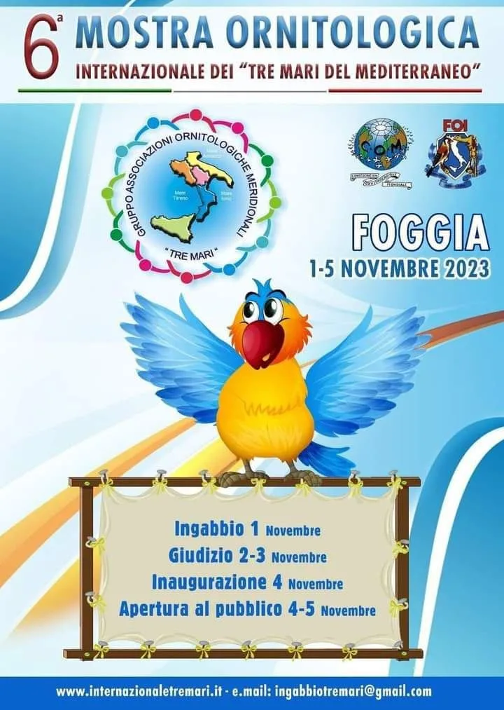 Foggia si veste di piume e penne provenienti da mezza Europa. Torna nel quartiere fieristico, al padiglione 71, la sesta mostra ornitologica dei Tre Mari e del Mediterraneo.