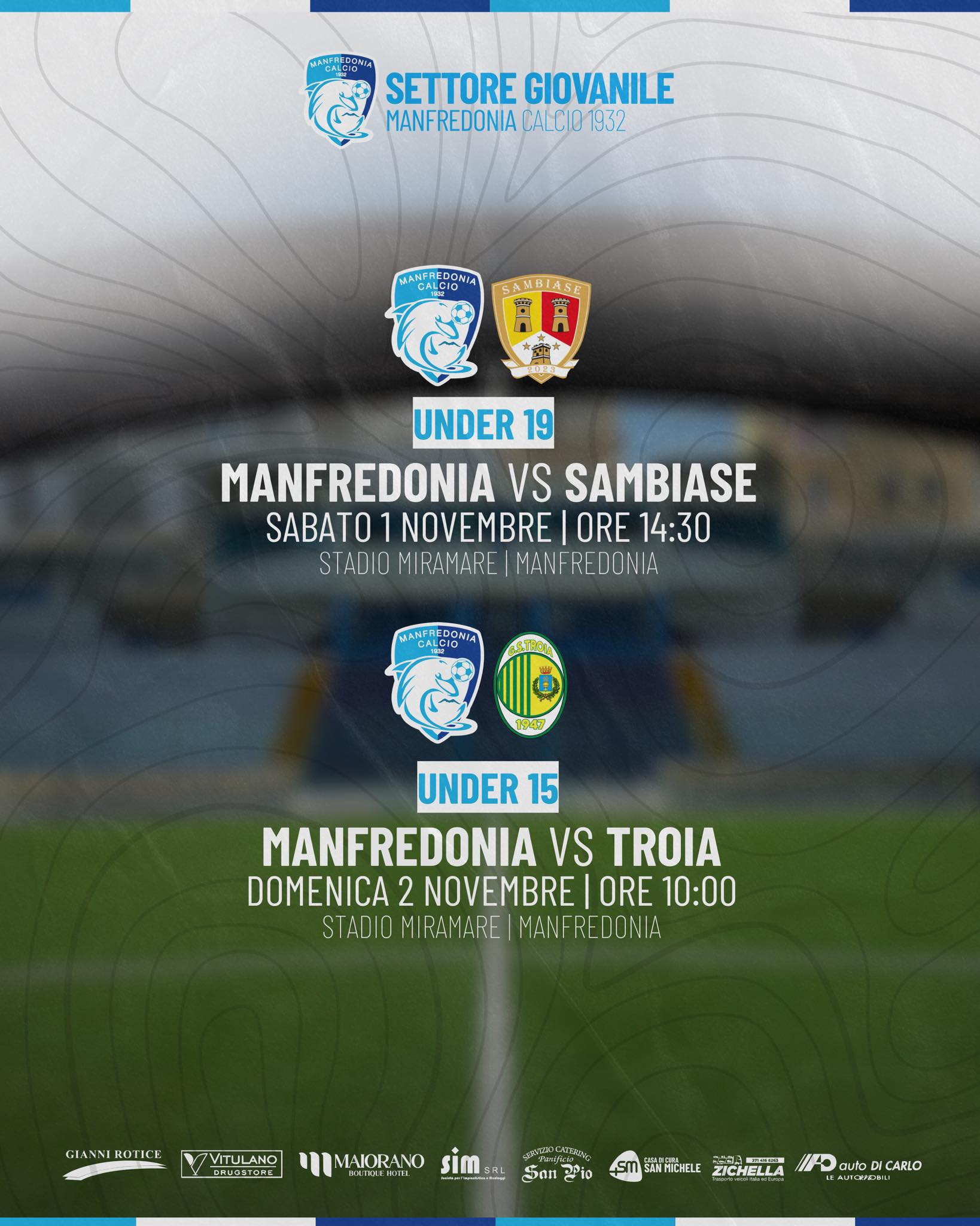 Nuovo fine settimana di impegni per il Settore Giovanile del Manfredonia Calcio, con Under 19 e Under 15 pronte a scendere in campo entrambe al Miramare, mentre l’Under 17 osserverà un turno di riposo.