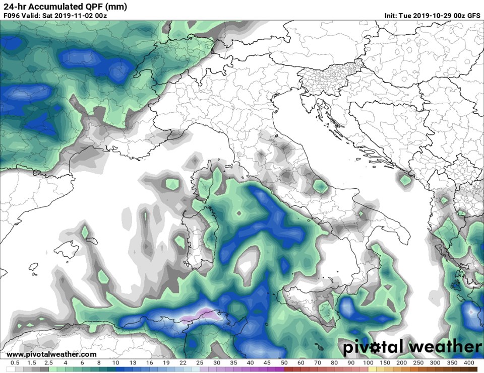 🌧️ molte scarse le possibilità di vedere in questo primo affondo autunnale le piogge classiche del periodo. I fenomeni risulteranno infatti deboli e irregolari, sicuramente con accumuli molto scarsi su tutto il territorio regionale. Si spera nei successivi affondi instabili previsti nei giorni successivi alla festività di Ogni Santo.