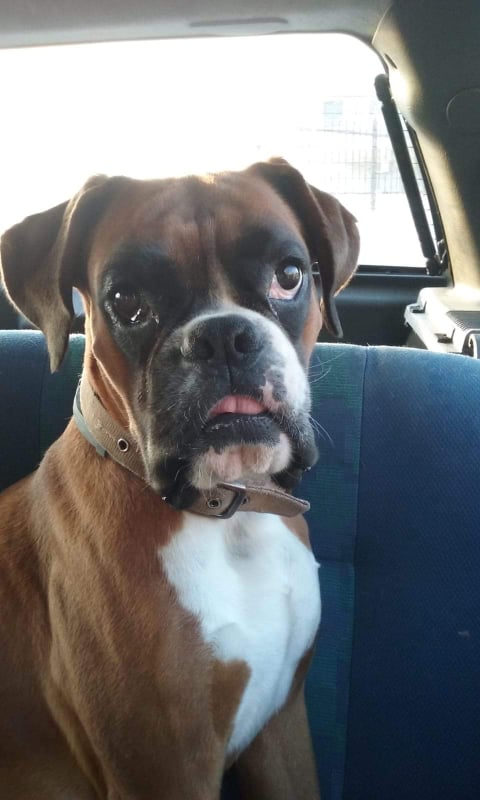 Boxer marrone di nome Hugo sparito stamattina nella zona artigianale. Mi aiutate a trovarlo 3471437030 Rachele Vescia