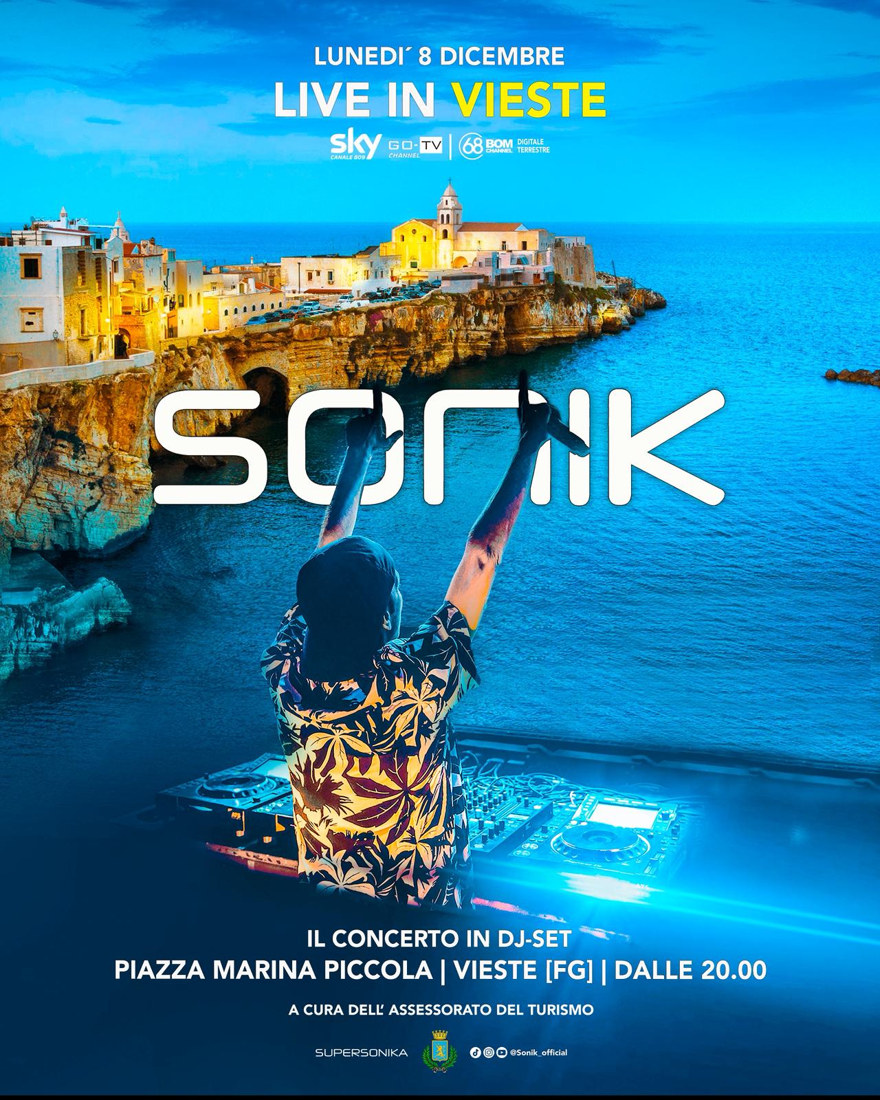 Il concerto in dj-set si terrà alle ore 20.00 circa in via Piazza Marina Piccola a Vieste.