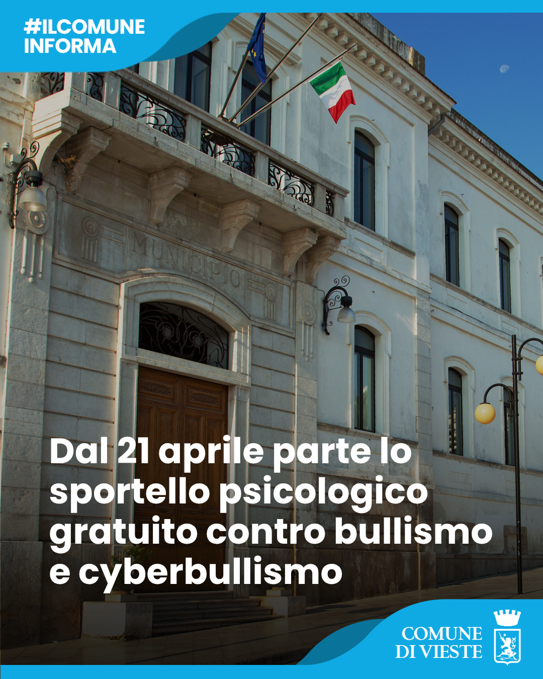 Sportello Psicologico del Comune di Vieste: Martedì 21 aprile parte il supporto gratuito contro bullismo e cyberbullismo