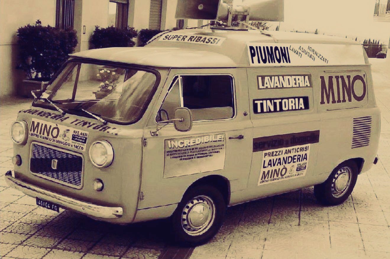 Manfredonia – STAMATTINA – ho rivisto lo storico furgone della lavanderia Mino’ – in via San Giovanni Bosco , in attesa di ricevere una consegna… Che commozione ho provato la storia – Squillava un piccolo autoparlante nell’aria , con il suo motto ripeteva – Lavanderia , tintoria Minò,serietà – Minò puntualità ,Minò precisione – servizio a domicilio  consegna rapida. Questo furgoncino era guidato da un certo Marasco Michele. erano gli inizi degli anni ’70 . Girava per la città da mattina a sera… accompagnava le nostre giornate – con le canzoni di Mina…erano i tempi della serenità. Fu la prima evoluzione, il primo servizio all’avanguardia – Ricordo, noi bambini correvamo dietro al mezzo che girava per le strade … tanto è vero che il popolo sipontino – ci scherzava su la famosissima Minò , con un detto, ed era :
