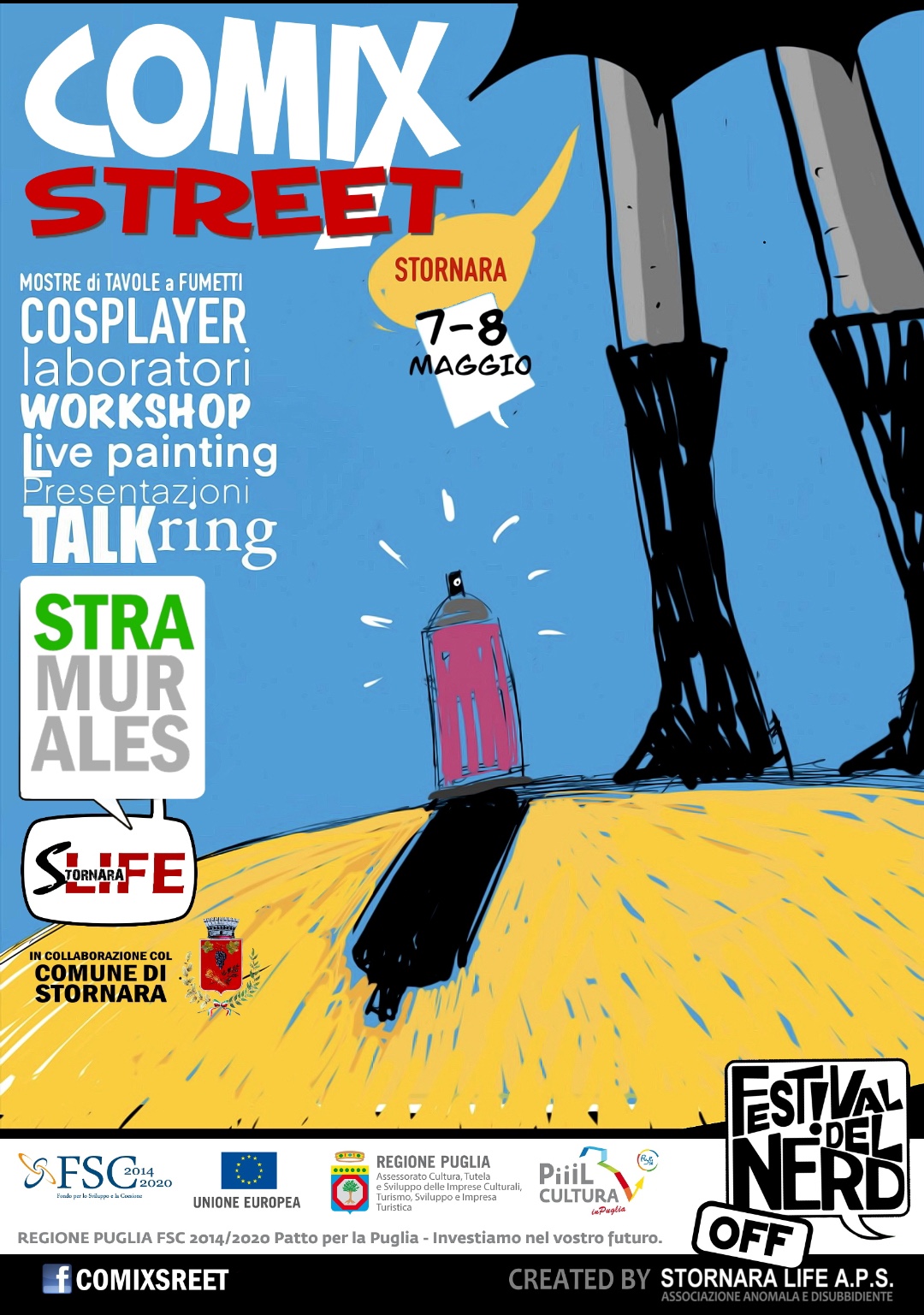 Il 7 e 8 maggio a Stornara, all’interno dell’isola pedonale di Via Ettore Fieramosca e di P.zza della Repubblica, è in programma la Rassegna “COMIX STREET”, organizzata dall’associazione di promozione sociale “STORNARA LIFE Aps” in collaborazione con il fumettista Giuseppe GUIDA, Direttore Artistico del Festival del Nerd.