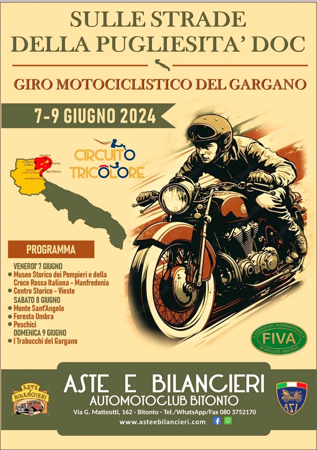 La manifestazione dell’ASI – Automoto Storico Italiano, inserita nel circuito tricolore, dal titolo ” Sulle strade della Pugliesita’ DOC”, arriverà a Manfredonia nella mattinata del 7 giugno per approdare nel nostro museo, dove nella sala conferenze della Cittadella della Sicurezza e della Formazione di Euroambiente, si terrà la presentazione della manifestazione e la conferenza sulla storia del museo e sul corpo dei pompieri.