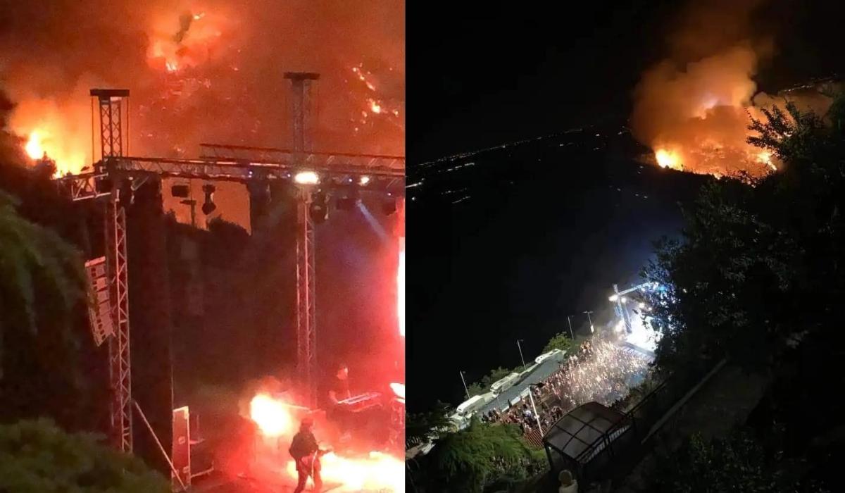 Un’immagine surreale scattata a Sant’Agata di Puglia durante il concerto di Red Canzian brucia la pineta del Monte Croce. L’ex bassista e voce dei Pooh infatti è a Sant’Agata di Puglia per un concerto organizzato da tempo. Come testimonia il successivo post del cantante, l’incendio non era vicino al palco e i vigili del fuoco erano a lavoro per domare l’incendio.