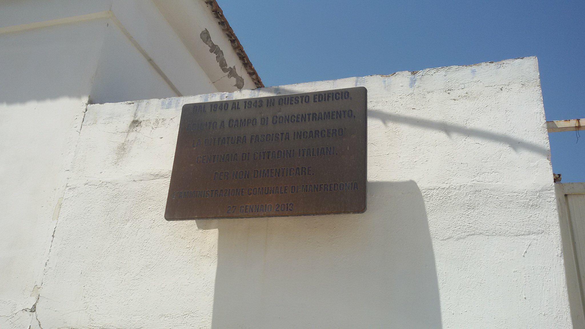 Nella giornata del 25 aprile abbiamo affisso uno striscione di denuncia della situazione di abbandono dell’ex campo di concentramento di Manfredonia (meglio conosciuto come ex-mattatoio o ex-macello, il che è tutto dire). Lo striscione riportava la frase “Ex campo di concentramento, nessuna storia, nessuna memoria!”, da qui il Sindaco Riccardi ha replicato dicendo: “probabilmente s’ignora che il 27 gennaio del 2013 (Giorno della Memoria) in qualità di Sindaco feci apporre una targa per ricordare a tutti, e alle giovani generazioni in particolare, che anche qui, nel nostro Comune, giunse in modo tangibile la violenza fascista.”