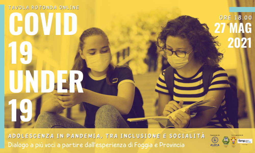 Dialogo a più voci a partire dall’esperienza di Foggia e provincia. Tavola rotonda con medici, psichiatri, mondo della scuola, adolescenti, associazioni, cooperative e compagnie teatrali. Giovedì 27 maggio 2021 alle ore 18.00 sui canali social di Aldia Cooperativa Sociale.