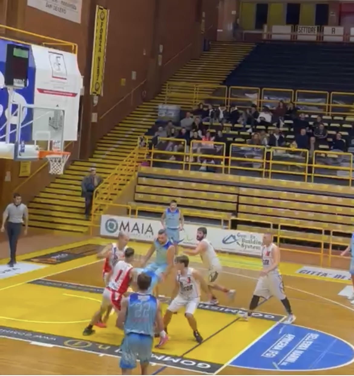 Lo starting five sanseverese era composto da Festa in cabina di regia, guardie Morelli e il sempreverde Miglio (30 punti per lui!!), Colucci e Lombardi nel pitturato.