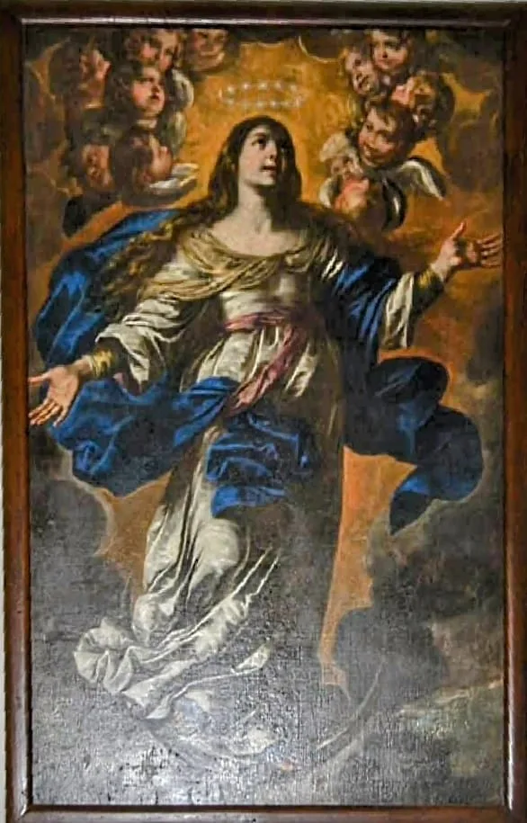 L’opera, un imponente ritratto dell’Immacolata Concezione, datato tra il 1640 e il 1650, si erge come un’occasione unica di esplorare la maestria di Vaccaro nel contesto della nostra città. Il ritratto maestoso della Vergine Maria, vestita con un abito blu e un velo bianco, rivela la grazia e la solennità caratteristiche dello stile barocco napoletano. Lo sfondo, con angeli dal volto sfumato, crea un’atmosfera celestiale.