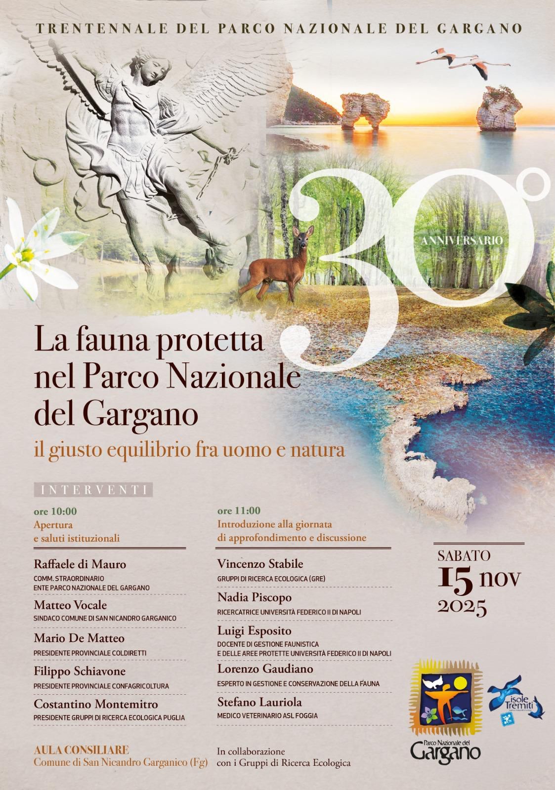 Si svolgerà sabato 15 novembre, a partire dalle 10.00 nell’Aula consiliare del Comune di San Nicandro Garganico, il convegno dal titolo “La fauna protetta nel Parco Nazionale del Gargano, il giusto equilibrio tra uomo e natura”.