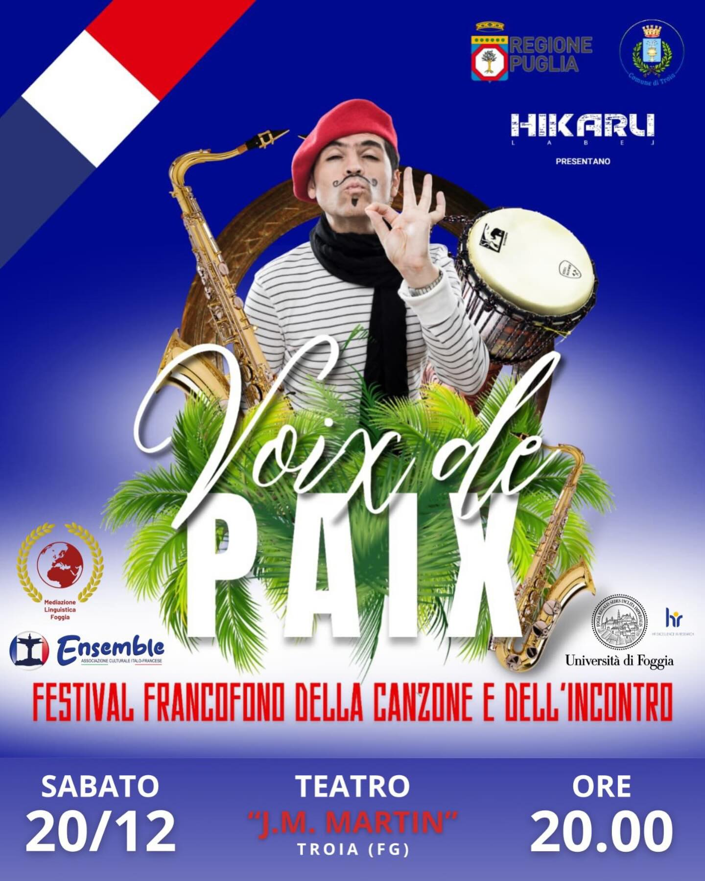 Il Festival “Voix de Paix” è promosso da Regione Puglia; Comune di Troia; Ensamble – Associazione culturale italo-francese; Hikaru Label; Unifg; Mediazione Linguistica Foggia.