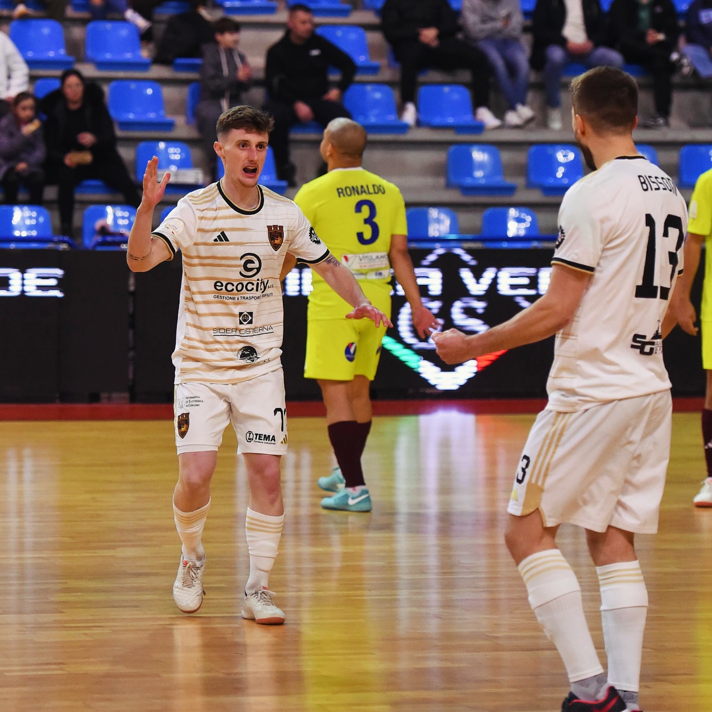 Ronaldo in contropiede a campo aperto si fa ipnotizzare da Di Ponto, alla sua prima presenza stagionale da titolare. All’8’ succede quella che sta diventato una regola sistematica dell’Ecocity: assist di Bissoni che apparecchia al limite dell’area sul mancino di Micheletto, il 77 come di consueto è una sentenza e infila sotto le gambe di Ainsa il 2-0.