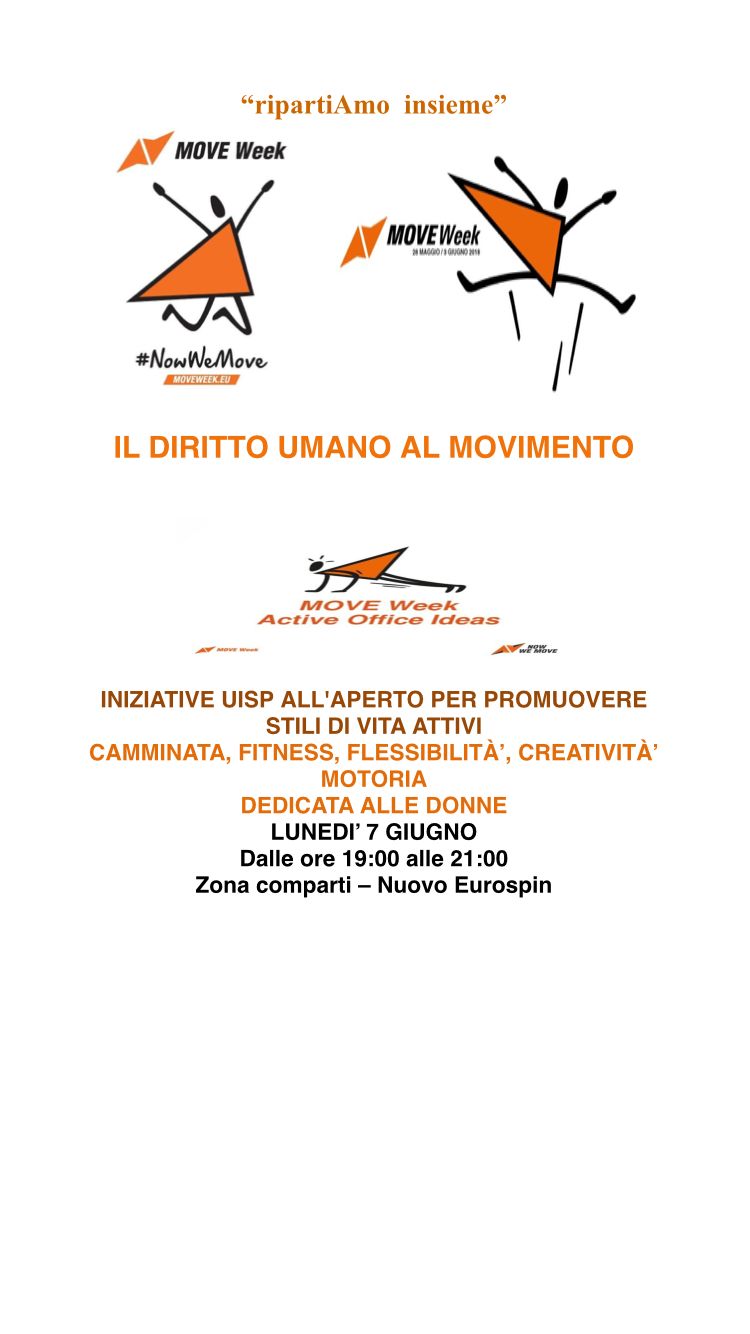 Si terrà lunedì dalle ore 19 alle ore 21 nella zona Eurospin situata presso i Comparti di Manfredonia – l’evento “Il diritto umano al movimento” – iniziative UISP all’aperto per promuovere stili di vita attivi” al quale tutta la cittadinanza è invitata a partecipare.