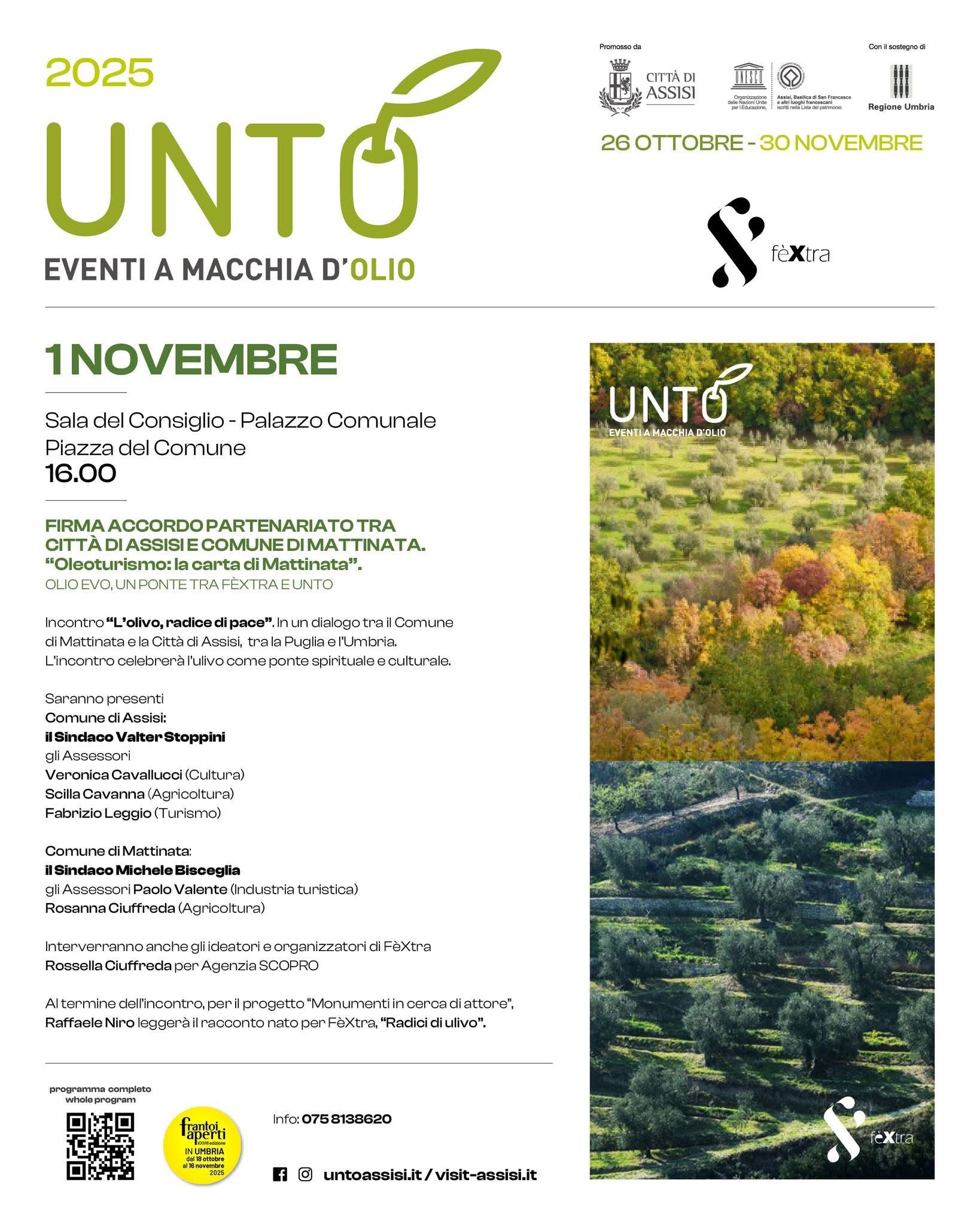 “Ulivo radice di pace” per FèXtra 2025: Mattinata ad Assisi per ponte con il festival UNTO, sabato 1 novembre la firma dell’accordo di partenariato