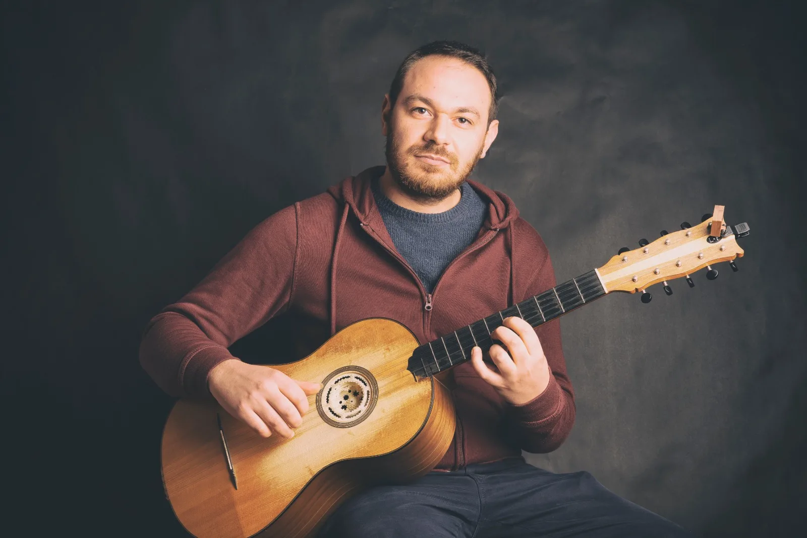 “Luca D’Apolito, nato nel cuore del Gargano, ad Ischitella, sin da bambino viene rapito dal suono della chitarra battente al quale si appassiona e dedica. E’ proprio della sua terra, uno dei centri fondamentali della musica e dello straordinario patrimonio della tradizione orale del Sud, che D’Apolito si impregna e fa sue melodie e tecniche strumentali e vocali di maestri assoluti, da Matteo Salvatore ad Andrea Sacco, proiettandosi con tale bagaglio nel mondo della musica di oggi e guardando a quella di domani.
