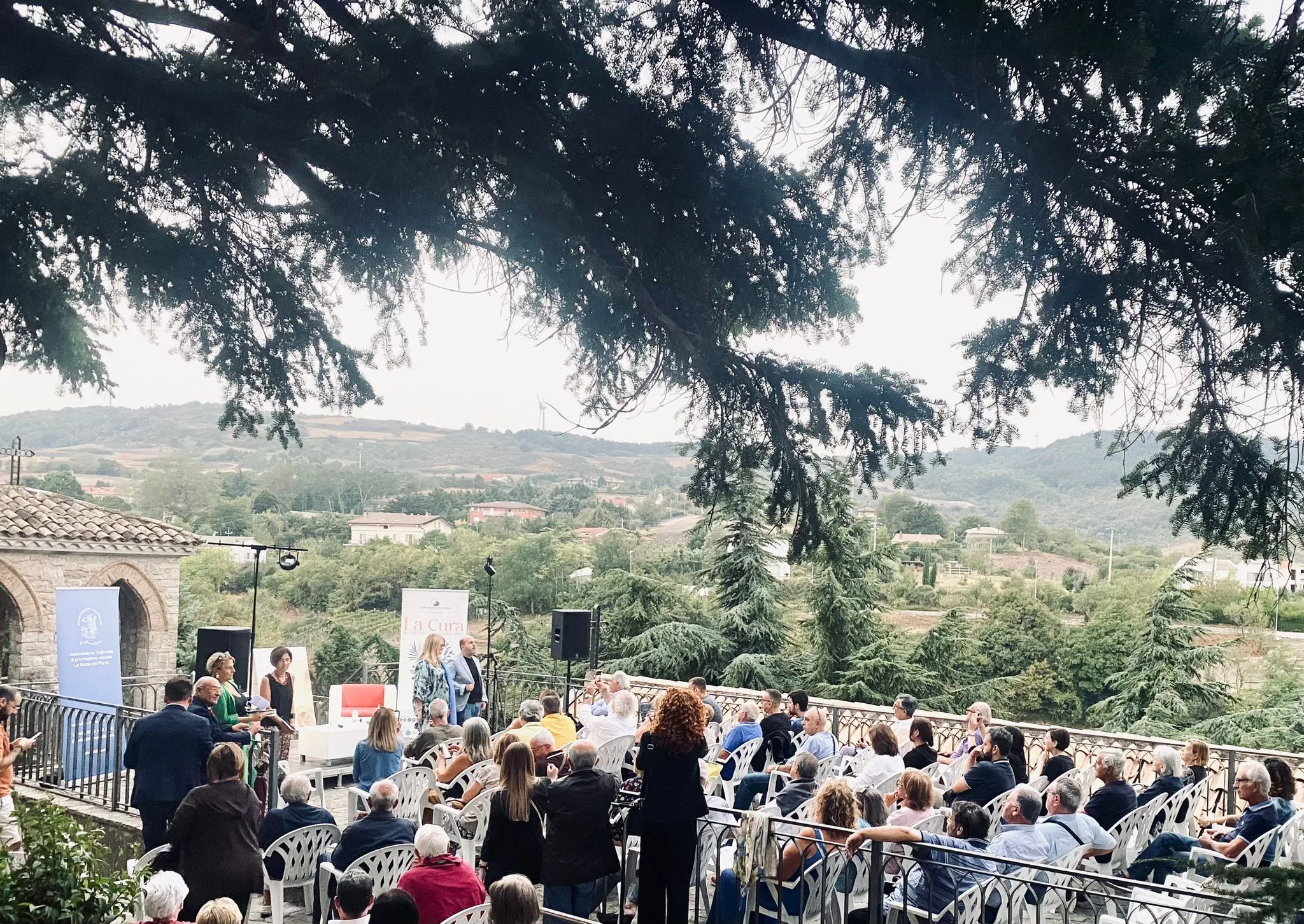 Particolarmente suggestiva la location scelta per l’evento. I partecipanti hanno potuto ammirare il tramonto sulla panoramica terrazza dell’Abbazia di Sant’Angelo, splendido e storico complesso di edifici sacri che ospita al suo interno l’antichissima Grotta di San Michele. Tutto il complesso e, in particolare, la Grotta dedicata all’Arcangelo ‘con la spada’ negli anni sono stati oggetto di diversi interventi per il mantenimento e la cura di siti di grande rilievo storico, artistico e religioso. Ed è proprio “la cura” il tema della ventiduesima edizione del Festival di idee, libri e autori.