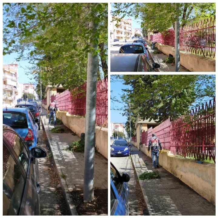 Manfredonia 29 aprile 2021, Via Tommaso Fiore, marciapiede e via pubblica, infestata di erbacce e sporcizia. Un privato e anziano cittadino, stamattina munito, di Santa pazienza, di zappetta, rastello e scopa, ha ripulito tutto il marciapiede, restituendo decenza e decoro alla pubblica strada.