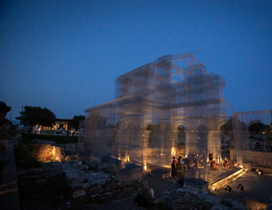 A partire da sabato 8 luglio, il percorso di visita del parco archeologico incrocerà la “scultura” musicale “In Arena” di Andrea Laszlo De Simone, estendendo il percettibile con effetti unici e irripetibili.