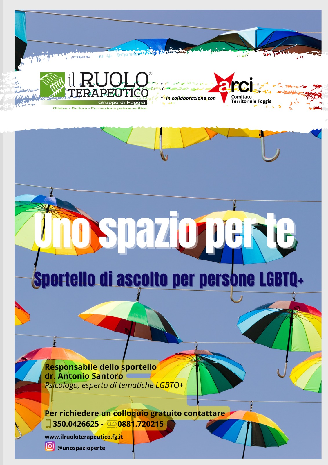 il Ruolo Terapeutico – Gruppo di Foggia e l’Arci Comitato Territoriale Foggia promuovono uno sportello di ascolto per persone LGBT+ denominato