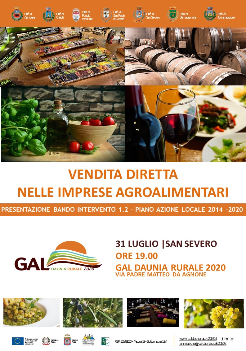 Il Gal Daunia Rurale 2020 ha pubblicato il secondo bando relativo all’intervento 1.2della Strategia di sviluppo Locale dal titolo “Sviluppo innovativo della fase commerciale e vendita diretta nelle aziende di produzione tipica locale agroalimentare”.