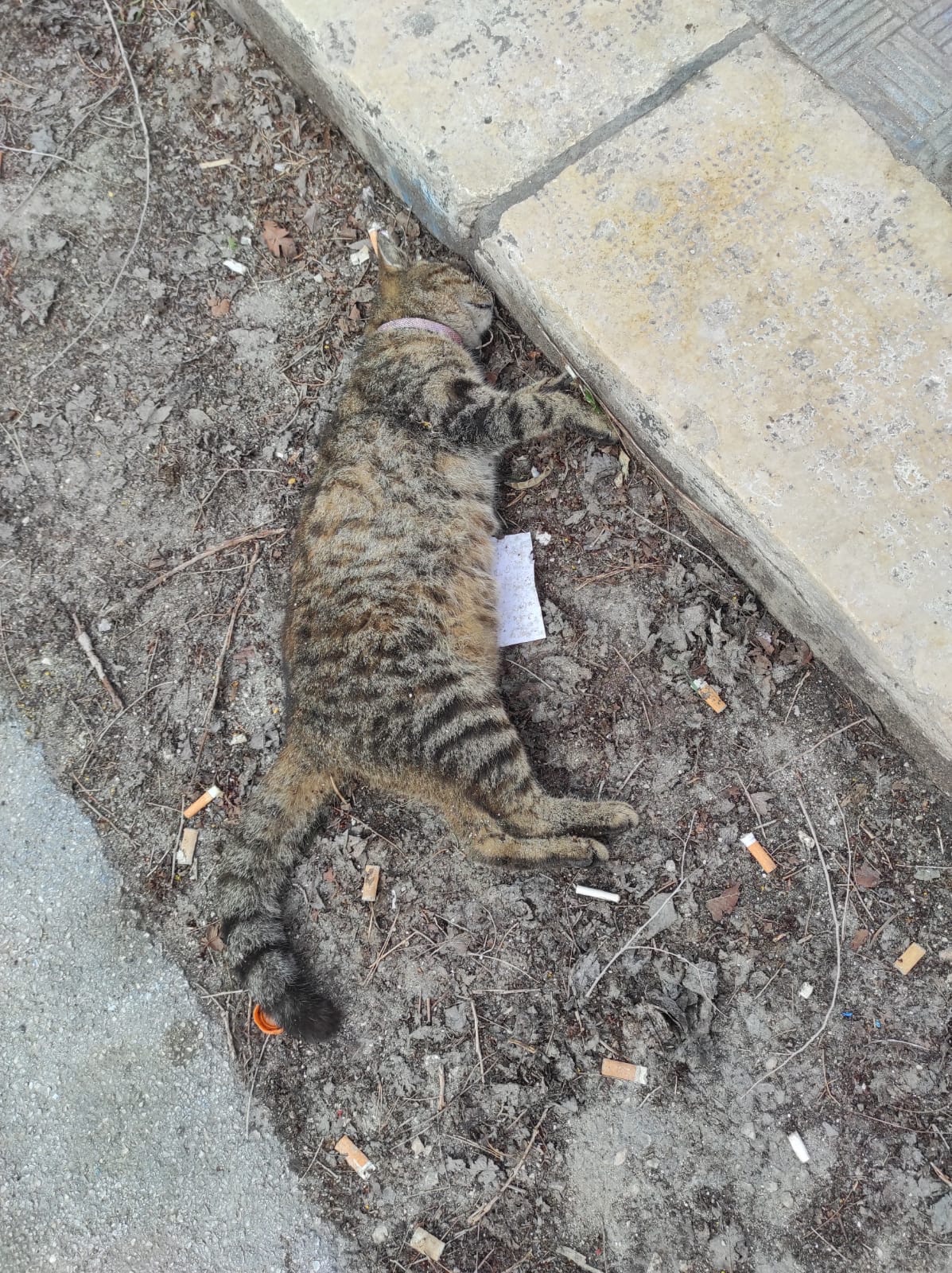 Il gatto che giace sul ciglio del marciapiede di Via Isonzo è ancora lì da lunedì mattina e la situazione igienico-sanitaria non è delle migliori.
