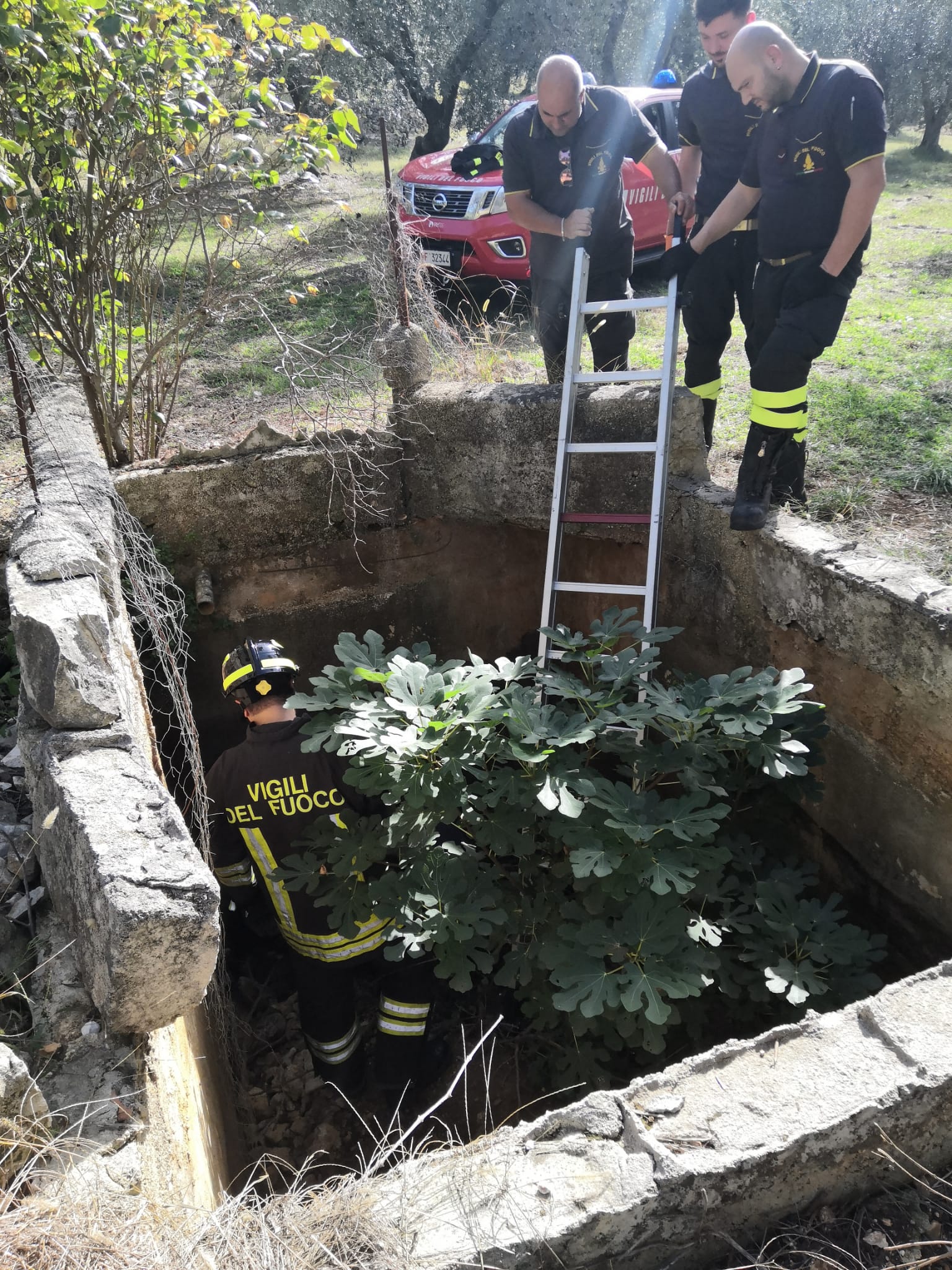Domenica mattina 23 ottobre, una chiamata di un cittadino al volontario Francesco Cannarozzi segnalava un cane caduto in un pozzo nelle campagne di Carpino.