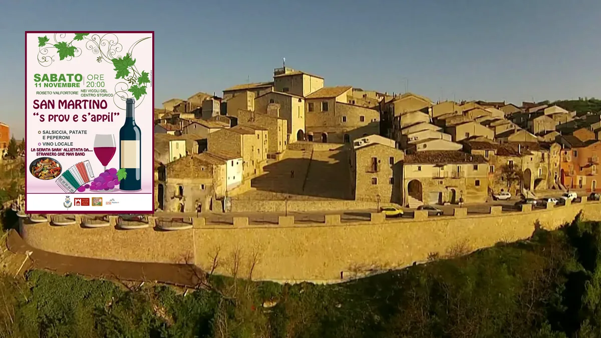 Sabato 11 novembre, tra i vicoli del centro storico di Roseto Valfortore, dalle ore 20:00 rivivremo tradizioni popolari con il vino locale, protagonista indiscusso della serata e piatti della tradizione (salsiccia, patate e peperoni) a cura della Locanda Di Tullio e Amalia. Sin dalle 18:00, musica ed intrattenimento per i presenti con Straniero One Man Band