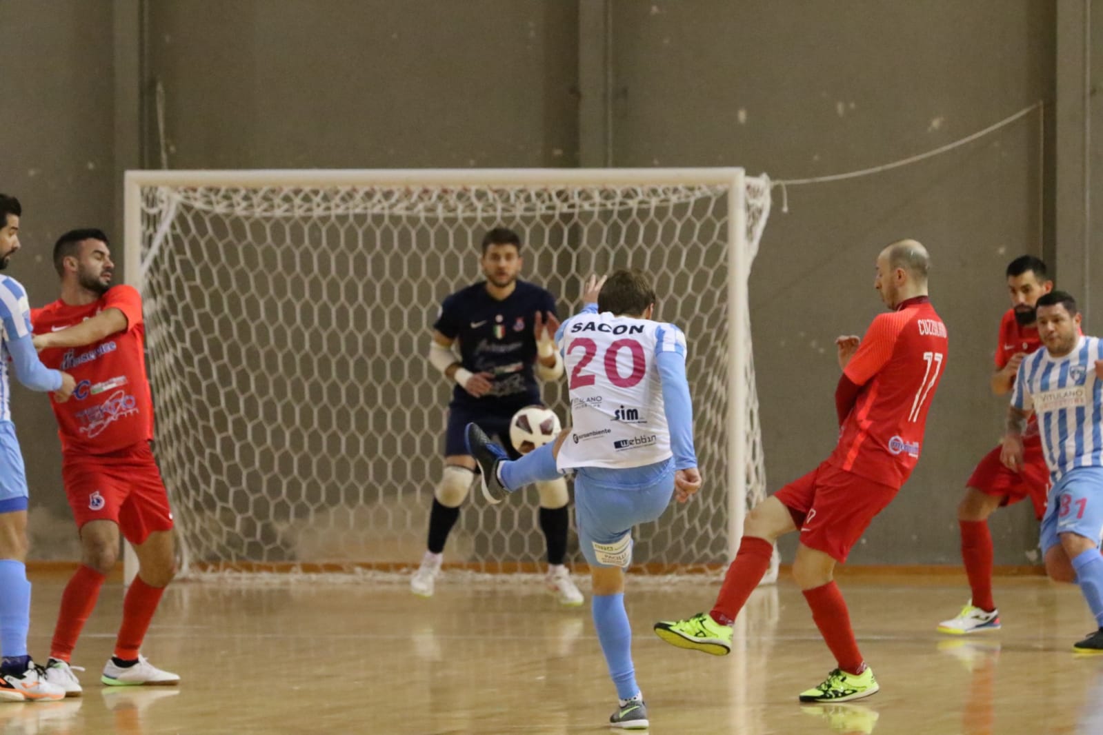 La ripresa si avvia con un Vitulano Drugstore C5 Manfredonia più incisivo in avanti. Il rilancio di Moretti, in avvio, innesca Foglia, la zuccata dell’ex pallone d’oro non trova il pareggio, solo per un super intervento di Espindola, che s’inarca e devia in corner. Cutrignelli propone lo scambio a Boutabouzi, palla restituita e conclusione del laterale barese, a lato. Nel momento migliore dei sipontini, Salas s’ inventa la rete del raddoppio. Al 5’40” il numero 8 degli ospiti, penetra in area, supera un paio di avversari e con un tocco maligno beffa Moretti. I garganici hanno orgoglio e determinazione e dopo circa 3 minuti, rientrano in partita. Caruso premia la corsa di Sacon, che scaraventa un potentissimo tiro all’incrocio sul palo lontano e gonfia la rete. Caputo, assistito da Foglia, di punta, manda fuori poco. Alcune discutibili decisioni arbitrali scaldano ancora più l’ambiente al Palascaloria. Canal riesce a cogliere due legni nella stessa azione e tiene in corsa i biancoceleste. Monsignori manda dentro Leandrinho come power play a 4’ dalla sirena. Il Vitulano Drugstore C5 Manfredonia preme alla ricerca del pareggio. Espindola è attento su Boutabouzi, poi mura il tentativo di Foglia, respingendo di volto e di piede su Leandrinho. La squadra di casa meriterebbe il pareggio ed è anche sfortunata, quando a 60 secondi dal termine, il mancino del carioca fa gridare al gol, palo interno e palla sputata fuori. Nell’ultimo assalto, Honorio recupera la sfera e al 19’47”, dalla propria area di rigore, fa centro per il definitivo 1-3. L’Italservice Pesaro sfrutta il passo falso del Syn Bios Petrarca, che perde 3-1 ad Ostia e arriva in vetta, condannando i sipontini momentaneamente al terzultimo posto. Si torna in campo, martedì 8 marzo, con l’impegno in trasferta del Vitulano Drugstore C5 Manfredonia sul parquet dell’Opificio 4.0 Cmb.
