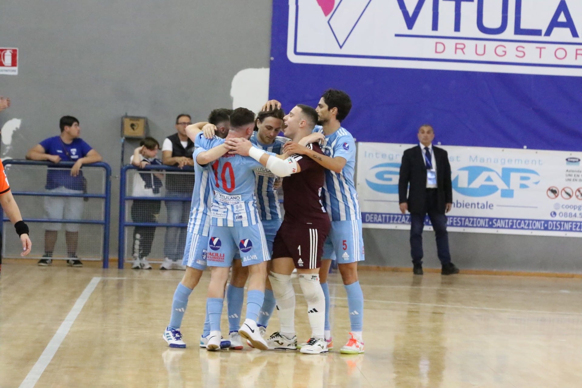 Il Vitulano Drugstore Manfredonia esegue correttamente il compito assegnato: sabato 11 maggio, al PalaScaloria di Manfredonia, batte 6-3 la S.S. Lazio C5, portando il punteggio complessivo a 12-3 ed eliminando i capitolini dai PlayOff di Serie A2 Élite. Escono dalla competizione entrambe le romane: l’A.S. Roma C5 viene sconfitta dal Città di Melilli che ribalta il punteggio dell’andata e sfiderà i sipontini per aggiudicarsi l’accesso alla finale. La gara d’andata si giocherà in Sicilia sabato 18, il ritorno a Manfredonia il 25. La strada che conduce alla Serie A viene imboccata anche da Pordenone e Leonardo Cagliari che confermano i risultati dell’andata eliminando rispettivamente Sporting Altamarca e CDM Genova.