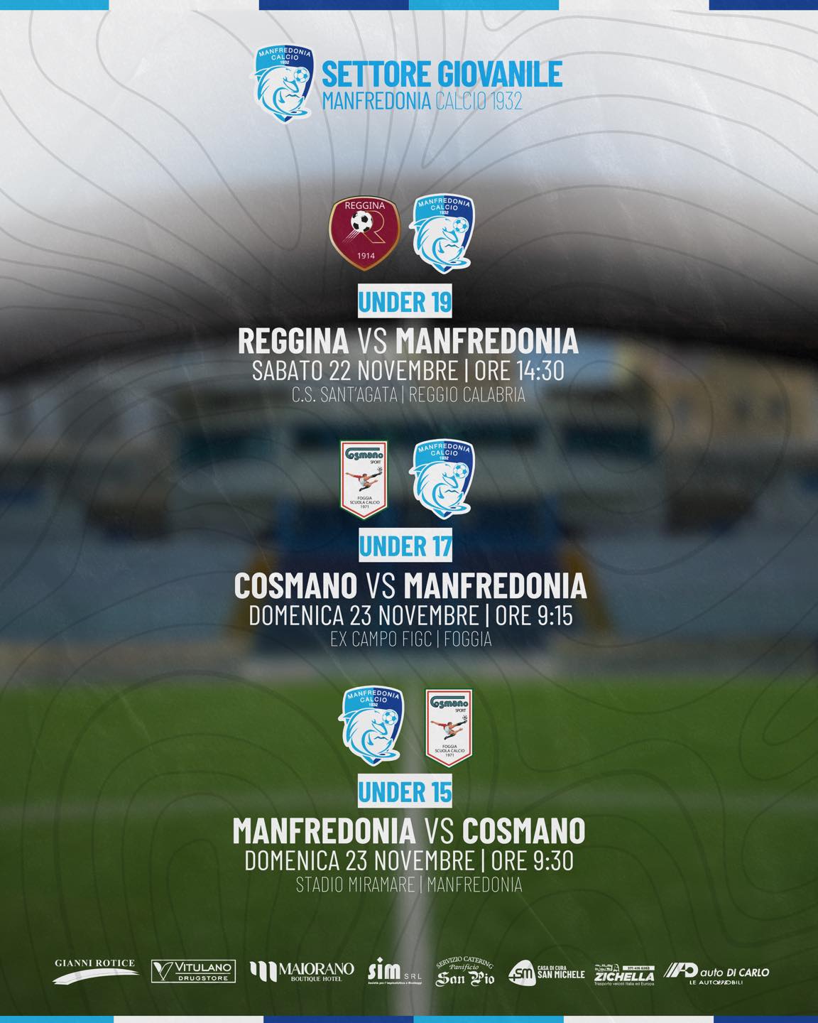 Nuovo fine settimana intenso per il Settore Giovanile del Manfredonia Calcio, con Under 19, Under 17 e Under 15 tutte pronte a scendere in campo.