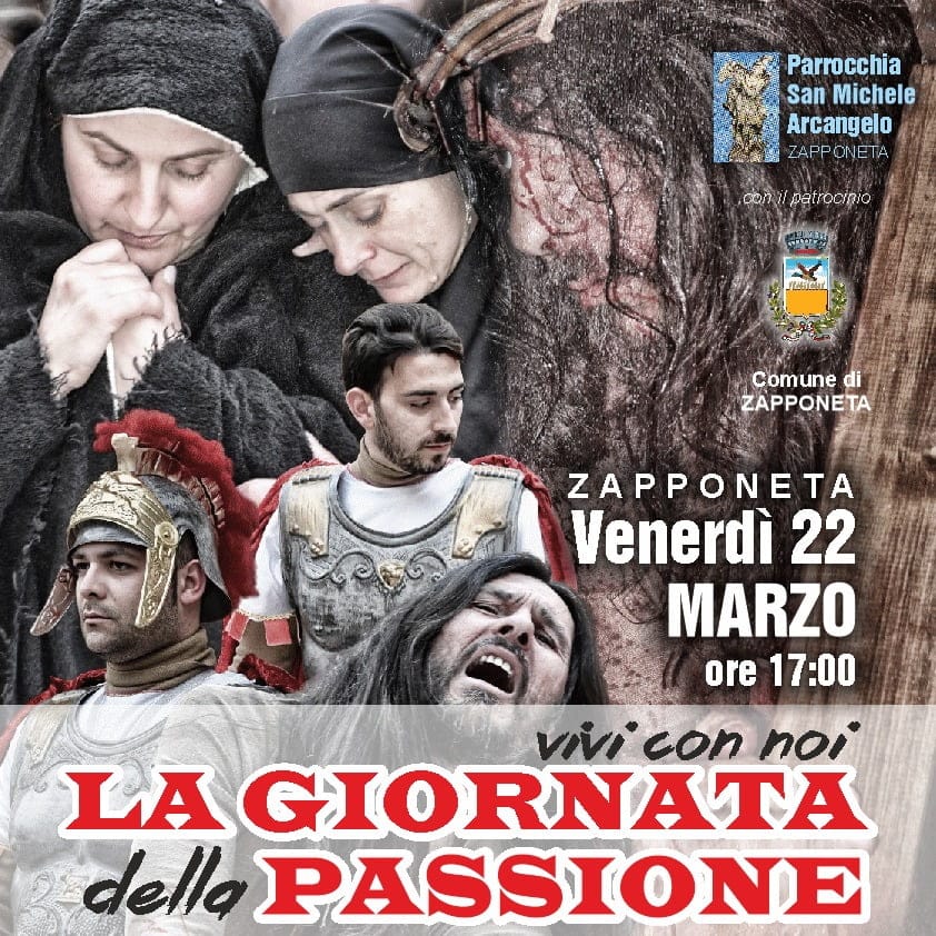 L’evento è stato organizzato dalla Parrocchiale San Michele Arcangelo di Zapponeta con il patrocinio e il contributo del Comune di Zapponeta e vedrà coinvolti circa un centinaio di figuranti che faranno rivivere le emozioni ed il pathos vissuti 2000 anni fa da Gesù di Nazareth.