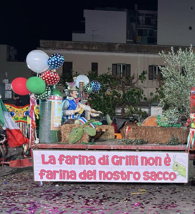 Il successo dell’iniziativa è stato evidente non solo nell’accoglienza entusiastica del pubblico, ma anche nei piccoli dettagli che hanno reso questa esperienza importante. Come testimoniato da una scena esemplare, in cui una bambina vestita da principessa, vedendo passare il carro di Ze’ Peppe, ha esclamato alla mamma con innocente saggezza: “Ma la farina di grillo non si mangia!”. Una reazione che riflette la portata del messaggio trasmesso e l’impatto positivo che ha avuto su tante persone invitandole a riflettere su quanto sta accadendo.