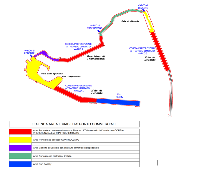 - AREE PORTUALI AD ACCESSO RISERVATO: aree soggette a “zona a traffico limitato”.